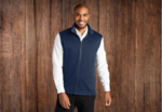 A smooth face, brushed back and coverstitching make this warm fleece vest a classier alternative to more casual fleece.